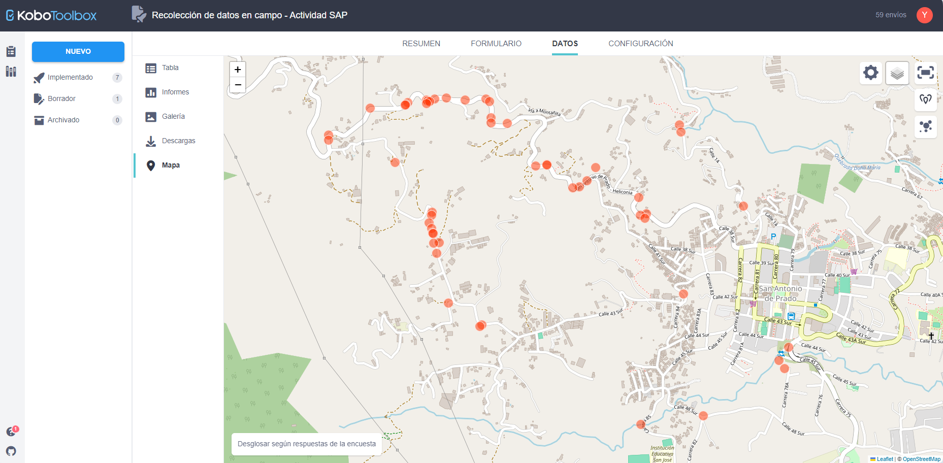 Además, el hecho de que la propia comunidad participara en la construcción del formulario de encuesta fomentó un mayor involucramiento en el proceso de recolección, ya que comprendía con claridad la información que se solicitaba. El uso de Kobo no solo permitió visibilizar los puntos reportados, sino también analizarlos junto con la comunidad, gracias a las herramientas de visualización, gráficos y tabulación de datos que ofrece la plataforma.